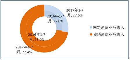 图2 2017年1-7月电信业务收入结构占比情况(固定和移动)