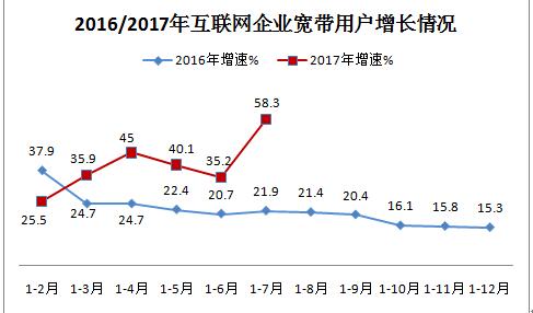 值得注意的是,在宽带中国战略和宽带接入市场开放试点等政策的推进下,民营资本持续进入宽带接入市场扩大投资,用户数量稳步增长。截止7月末,互联网企业共发展宽带接入用户3978万户,同比增长58.3%。