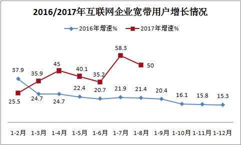 截至8月末,互联网企业共发展宽带接入用户4050万户,同比增长50%。