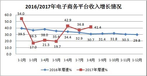 近日,工信部发布了2017年1-8月的互联网和相关服务业相关数据,数据显示,2017年1-8月,互联网和相关服务业①规模增速保持两位数,营业利润保持较高增速,网络购物和网络交易平台保持活跃。