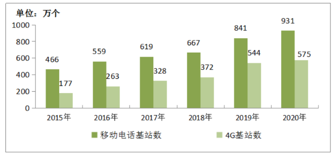 2015-2020年移动电话基站发展情况