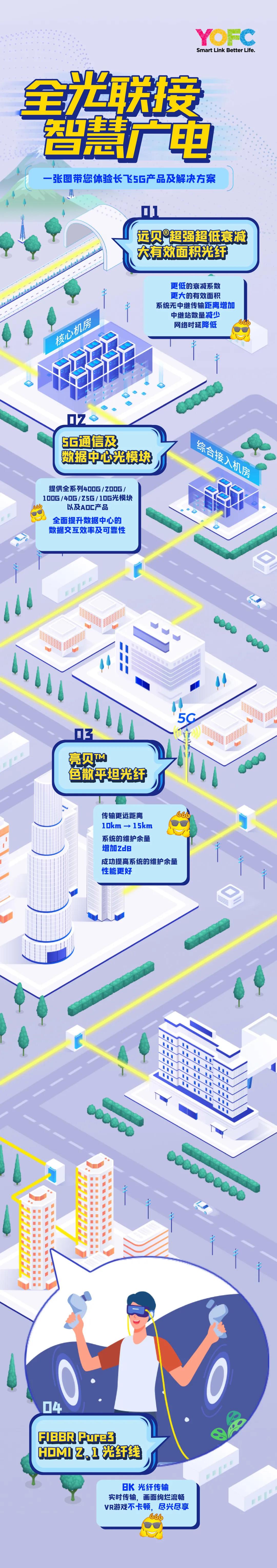 长飞光纤光缆股份有限公司(以下简称“长飞公司”,股票代码:601869.SH、06869.HK)以“全光联接 智慧广电”为主题,重点展出5G全联接、5G承载网、消费电子、数据中心等产品与解决方案。