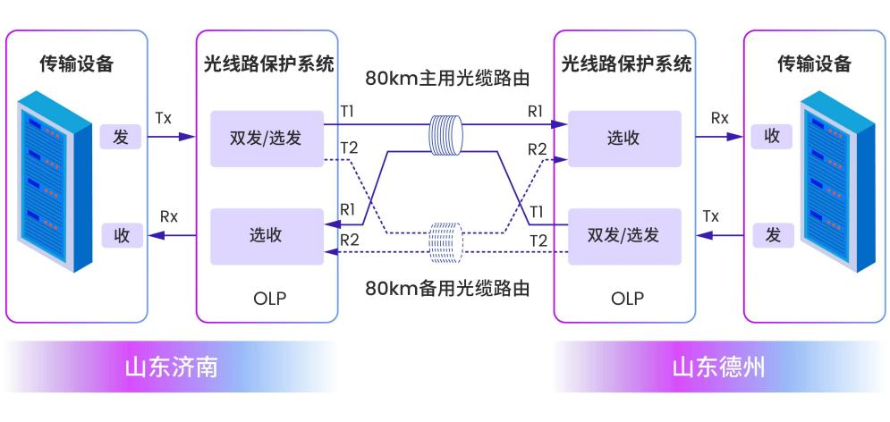 设备通过OLP系统可实现光链路骨干网1:1保护,当主用线路光缆出现故障,业务可在50ms内切换至备用线路,并在主用线路光缆恢复时再从备用线路回切至主用线路。此外,还可以灵活设置返回时间、返回模式等,满足可靠性、稳定性要求较高的应用场景。