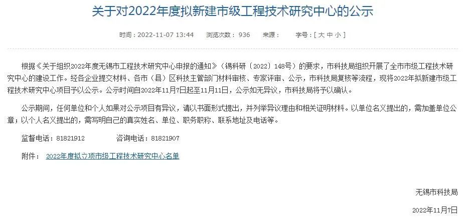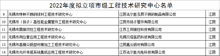 近日,无锡市科技局发布《关于对2022年拟新建无锡市级工程技术研究中心》,法尔胜集团不锈钢公司的无锡市特种不锈钢线材工程技术研究中心及光科集团光电公司的无锡市光纤传感系统集成应用工程技术研究中心均成功入围榜单!