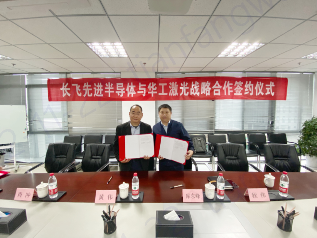 11月22日,安徽长飞先进半导体有限公司(以下简称“长飞先进半导体”)与武汉华工激光工程有限责任公司(以下简称“华工激光”)签署战略合作协议。我司首席科学家刘红超、华工激光高级副总经理库东峰代表双方公司进行现场签约,总裁陈重国先生等出席签约仪式。