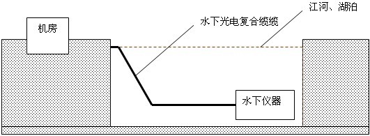 水下光电复合缆是敷设江河、湖泊的光缆。其敷设于水下,要求具有非常好的密封不透水性能,采用钢/聚乙烯粘结护套、钢丝铠装结构,由用于供电的馈电线和不锈钢松套管光单元组成。其中,馈电线主要用于提供电能给水下仪器仪表,光纤则用于上传水下仪器仪表的采集信息和传送机房的控制指令。其工作示意图如图1所示。