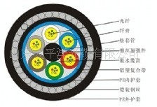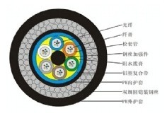 产品描述---金属加强构件、松套层绞填充式、铝-聚乙烯粘接护套、单细圆钢丝铠装、聚乙烯套通信用室外光缆