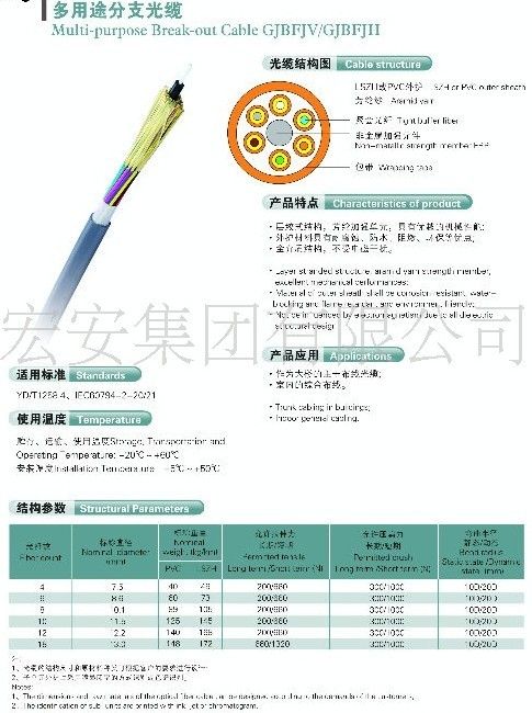 结构:紧套光纤(涂履光纤)+非金属加强件(金属加强件)+阻燃PVC