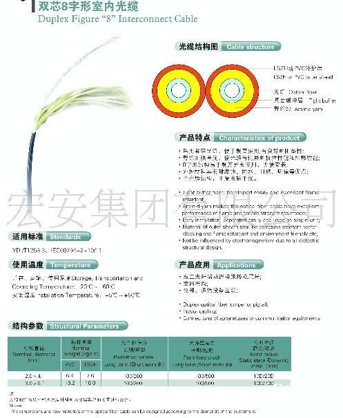 责任编辑:光电通信 2013/08/26 产品名称:双芯8字形室内光缆型号:八字型光缆结构:紧套光纤+芳纶纱+外护套适用范围:接入网,光纤到户适用标准:YD/T1258.3质量认证:美国UL ISO-9001联系人:田部长 联系电话:15166138861 0631-8088604