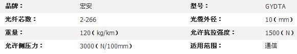 责任编辑:光电通信 2013/08/27 产品名称: 层绞式通信用室外光缆型号:GYDTA 规格:2-266芯 结构:光纤带、金属加强构件、松套层绞填充式、铝-聚乙烯粘结护套适用范围:管道、架空质量认证:美国UL ISO-9001执行标准:YD/T 901-2001联系人:田部长 联系电话:0631-8088604