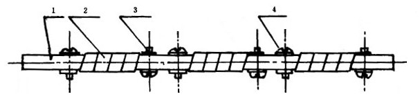 1-金属棒 2-试样 3-螺栓 4-螺母