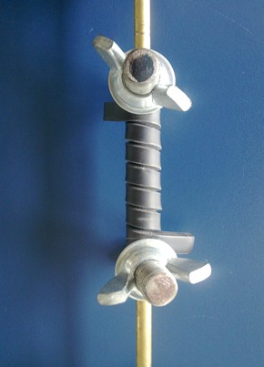 ②每个试样应在环境温度下紧密地在试棒上绕成螺旋形。具体方法为将试样的一端用螺栓固定在试棒上,另一端挂一定重量的砝码,再进行卷绕,卷绕圈数为6圈,再将另一端用螺栓固定后取下砝码。砝码的重量可以选取3 kg、5kg、7 kg,重量的选择视电缆规格大小而定(砝码挂重越重,抗开裂性能就越好)