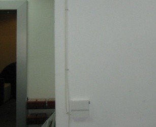 墙上:每户用1个墙上挂钩和1个光缆张紧器紧固光缆吊线(图15)。