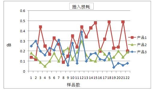 图1和图2为3个不同厂商产品的光学性能情况,其中产品1和产品3为预置式,产品2为非预置式,3种产品的连接器插头均为SC/PC型。