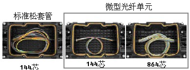 图7 微型光纤单元与标准松套管光纤光交箱中的比较