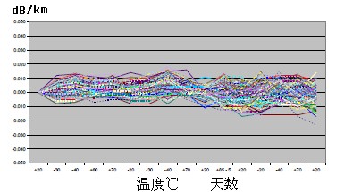 图10 720芯光纤体积减小光纤单元光缆:衰减变化(dB/km)在1550 nm处 温度循环老化后的5天 85℃
