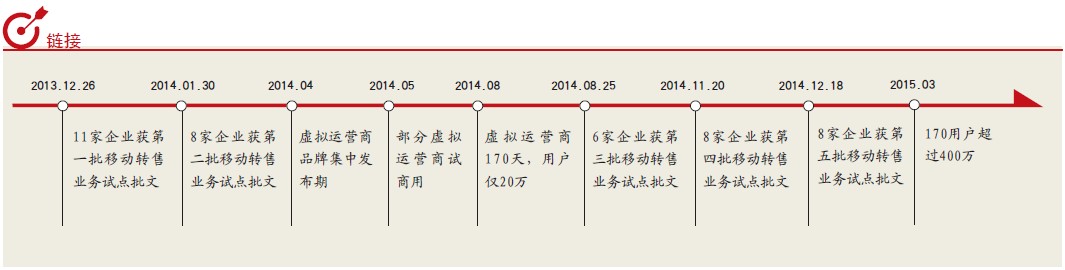 即将一年的时间,虚拟运营商就从高调登场变为寥寥数语。据记者了解,获得移动转售试点牌照的42家企业中仅有20家发布业务。除蜗牛移动宣布用户突破百万外,其他发展相对较快的京东、阿里、国美、苏宁等尚未公布用户数。据接近管理部门人士透露截至3月底,虚拟运营商在网开卡用户总数达到400万。
