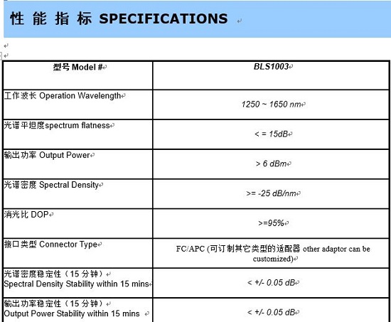 近日,深圳优峰通信技术有限公司推出新品--超带宽宽带光源,该款新品型号为BLS1003,可用于粗波分复用CWDM元件、高精密波分复用DWDM元件、光波导光栅阵列AWG元件、平面光波导PLC元件、光放大器EDFA、滤光片和其它通用光纤的光学测量和应用,尤其适用于CWDM滤光片和器件的批量生产。有需求的企业可与光纤在线或优峰取得联系!