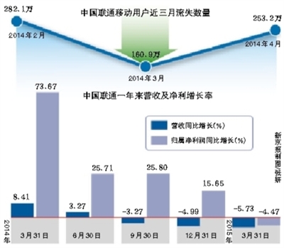 中国联通昨天发布最新运营数据。数据显示,继3月份流失160.9万户之后,今年4月中国联通移动用户再度流失253.2万,总数降至2.92亿。这是中国联通连续三个月流失移动用户,主因是GSM用户流失规模大幅超过3G和4G新增用户数。