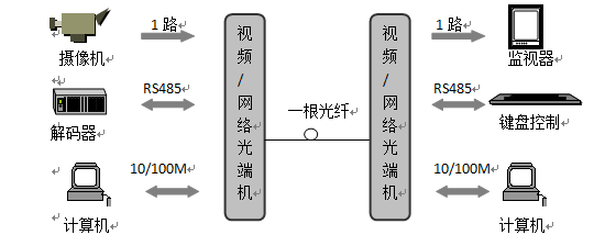 传输系统主要有一个电光信号转换/发送器,它将摄像机输出的视频电信号转换为光信号,并被载在光波上,再经耦合输入到光纤光缆内,接着经光缆传输,被一个光电信号接收/转换器接收。这个接收/转换器将光纤传来的光信号转换为电信号,并解调出所传送的视频电信号,供监视器显示。。