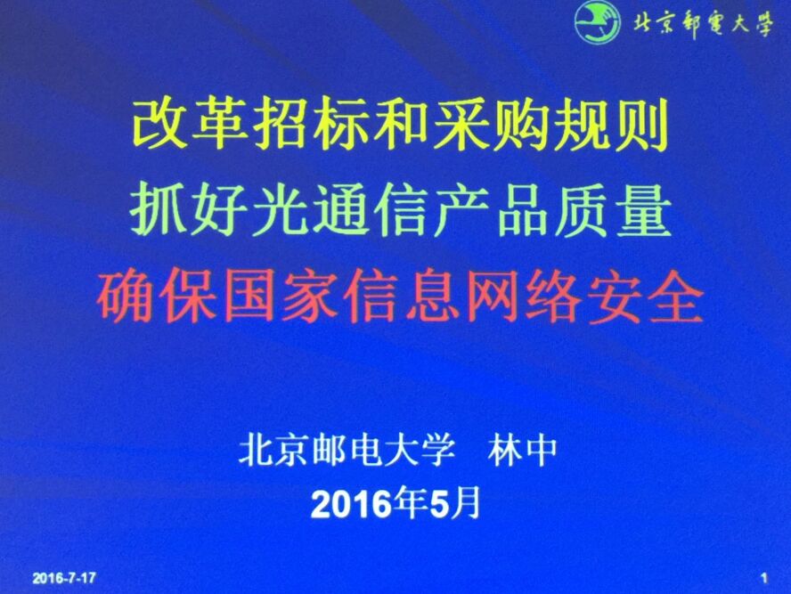 林中教授还对近几年国家光通信产品存在的质量问题进行分析,并对招标和采购规则改革提出建议。林中教授演讲声情并茂,深入浅出,赢得了现场热烈的掌声。