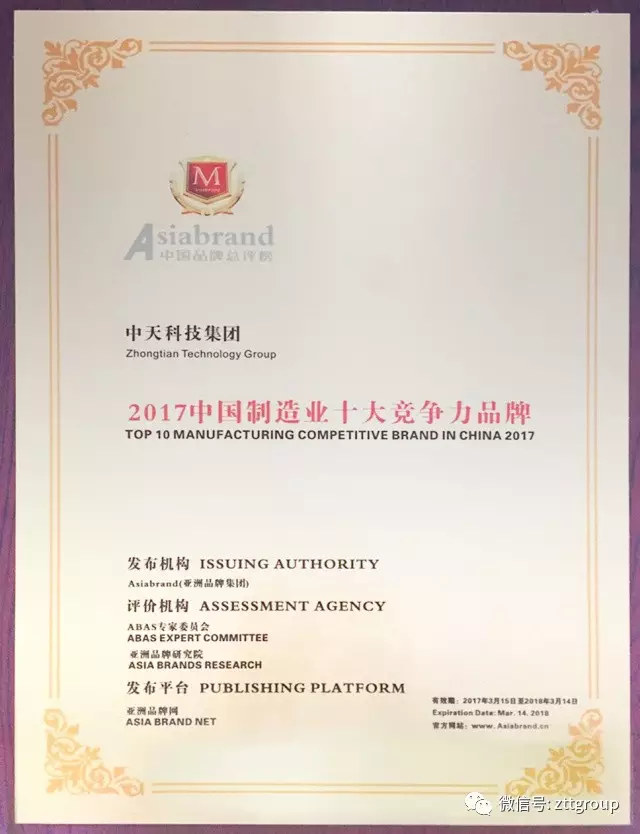 在国际消费者权益日当天,“2017中国品牌总评榜——3.15中国十大行业品牌价值榜”发布会在北京隆重举行。中天科技凭借过硬的产品质量优势跻身“制造业十大竞争力品牌”,作为对“3.15”及刚刚过去的中天品牌日的最佳献礼。