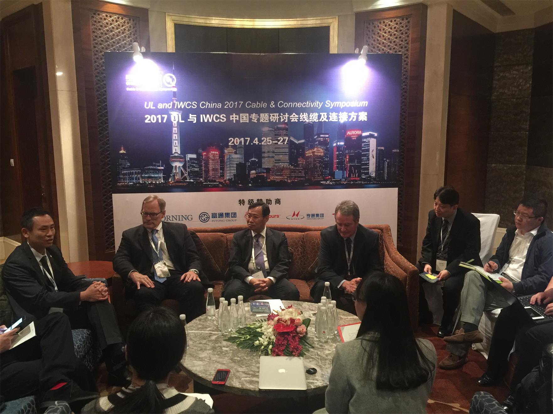会后,UL全球副总裁及电线电缆总经理赖伦辉、大中华区电线及电缆业务董事总经理石海洋,IWCS首席执行官/董事David B.Kiddoo、Chairman Rob Wessels,还接受了光电通信、网络电信、上海日报等媒体的采访,就本次会议对行业发展产生的作用、一带一路、质量问题、技术创新等议题进行了深入的沟通交流。