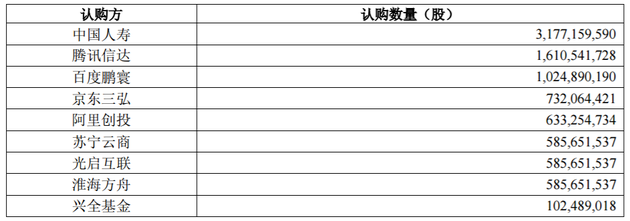 本次非公开发行的股票数量为不超过9,037,354,292股,预计募集资金总额不超过617.25亿元。各认购方拟认购数量具体如下: