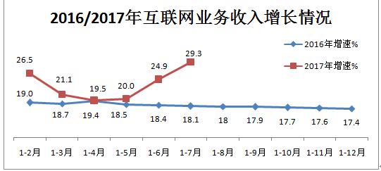 总体运行情况为:互联网业务收入增速明显提升。1-7月,我国规模以上(2)互联网和相关服务企业(简称互联网企业)完成业务收入3848亿元,同比增长29.3%。