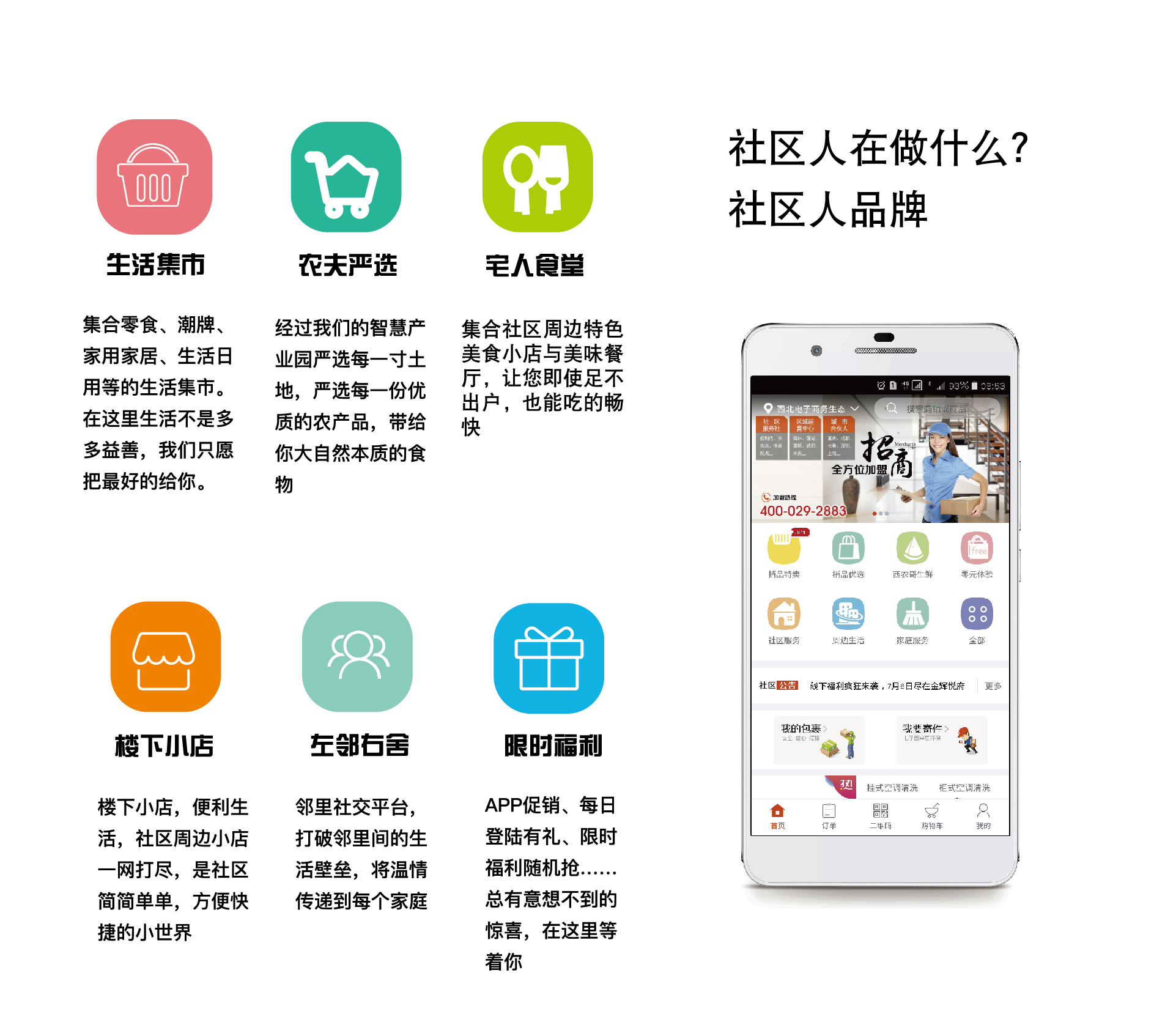 作为西安景兆旗下的智慧社区品牌,“社区人”服务社区最后一公里,以社区人APP为线上服务端,联合城市合伙人及社区合伙人在每个城市开通1000个社区门店,打造集快递代收发、本地生活服务、家庭服务、日常购物、生鲜直购、社区社交功能于一体的智慧社区服务平台。
