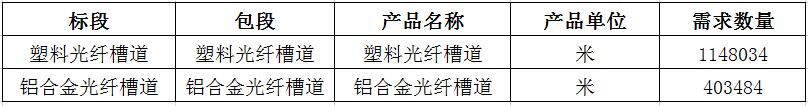 二、在标包2(铝合金光纤槽道)中6.3报价格式表的“投标报价一览表(铝合金光纤槽道)”中,基准规格100mm×150mm铝合金光纤槽道直槽(含U型直槽和端口封板)不含税价格的最高限价为26.25元/米。