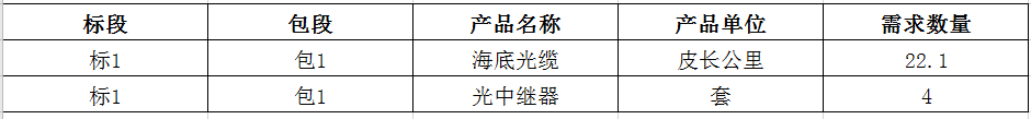 1、业绩要求:投标人须自2017年1月1日起至2020年5月31日(以合同签订时间为准)具备至少一个同类项目经验(同类项目指:国际/国内海底光缆项目);