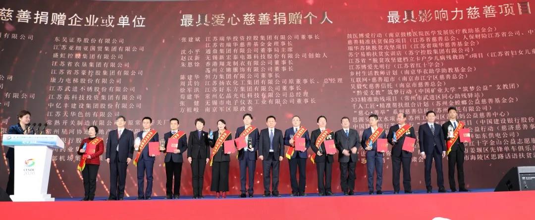 据悉,“江苏慈善奖”由江苏省政府设立,每两年评选一次,旨在进一步弘扬慈善精神,激发全民向善、人人为善的昂扬热情,带动更多社会力量参与慈善事业。此次江苏省共有30家单位、20家慈善组织、30名个人、20个慈善项目获第五届“江苏慈善奖”称号。