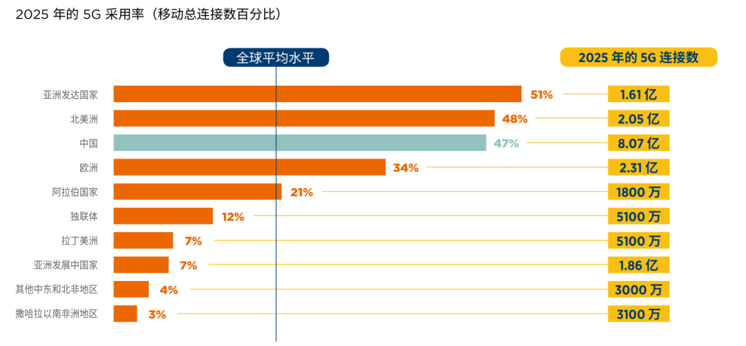 *图片来源于GSMA智库数据,图为:2025年全球5G连接数预测