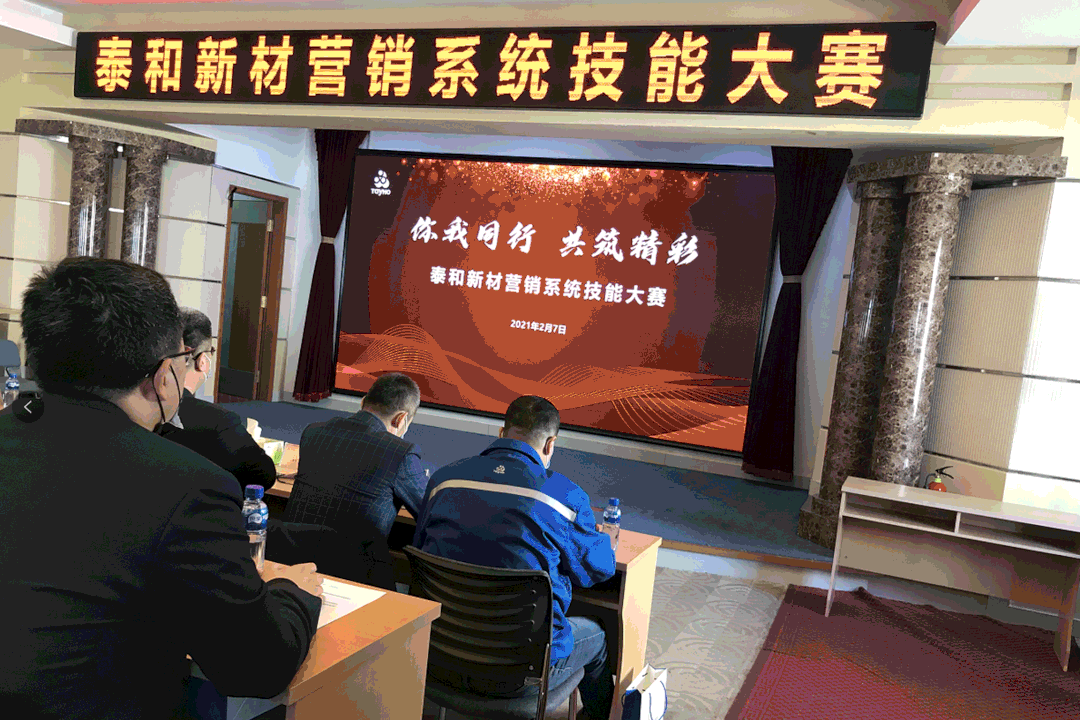 为提高市场营销人员业务能力,营造积极学习的氛围,2021年2月7日下午,烟台泰和新材料股份有限公司(以下简称“泰和新材”)营销系统销售技能大赛在公司报告厅热力开启。