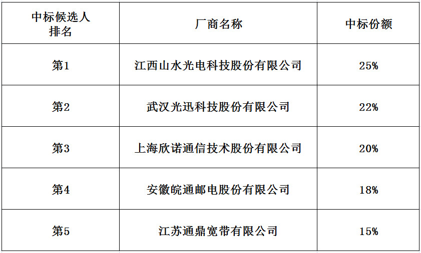 2021/04/30 责任编辑:swift 访问:5071 4月28日,陕西移动2021-2022年无源光纤复用设备集中采购项目中标候选人公示:共计有5家厂商入选。中标候选人的投标报价及中标情况见下表:此前的招标公告内容显示,本项目拟采购无源光纤复用设备11047套,具体需求数量如下表:本项目设置最高投标限价,投标折扣系数最高限价为100%。投标人投标报价高于最高投标限价的,其投标将被否决。中国移动采购招标