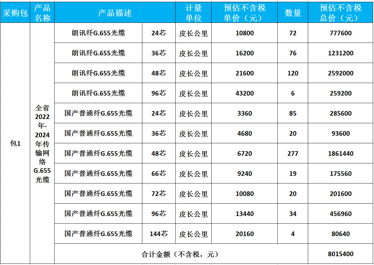 2021/12/17 责任编辑:swift 12月16日,中国移动福建公司全省2022年-2024年传输网络G.655光缆集中采购招标公告发布。公告显示,本项目拟采购朗讯纤G.655光缆、国产普通纤G.655光缆。具体采购明细见下表:项目预估金额:801.54万元(不含税)。项目不划分标包。中标人数量规定为1个,中标份额100%。项目设置最高投标限价,设置的综合折扣系数不能大于100%,综合折扣系数大于100%的将否决其投标。中国移动采购招标