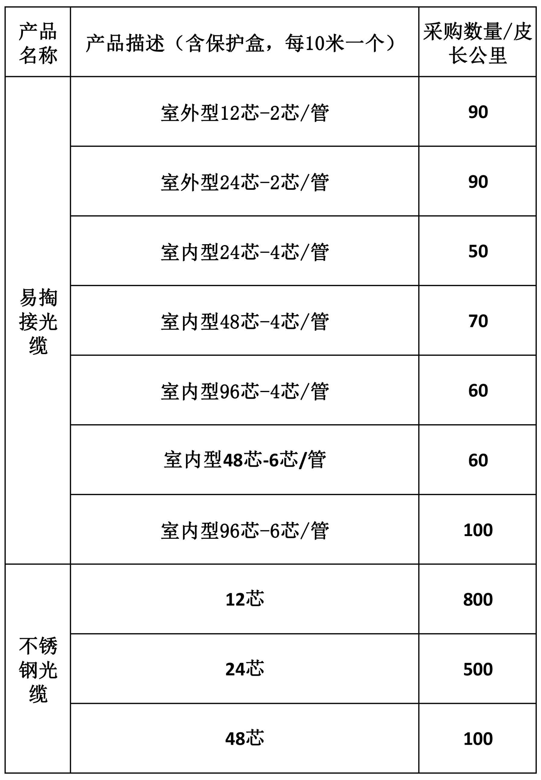 近期,有关特种光缆的集采引发共同关注。除了2022年1月11日之外,2月18日,福建移动第二次发布易掏接光缆,以及不锈钢光缆集中采购招标公告,采购明细详见下表:
