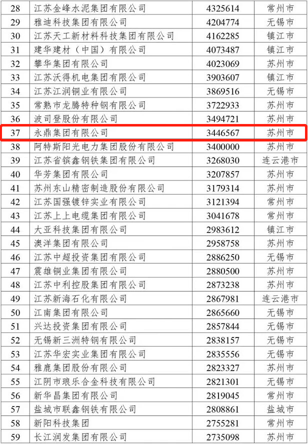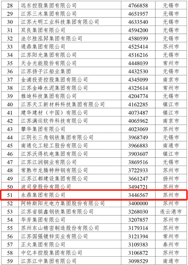 其中永鼎集团位列“2022江苏民营企业200强”第51位、“2022江苏民营企业制造业100强”第37位。