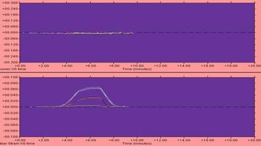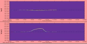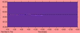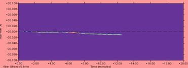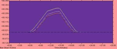 图1所示的是一条GYTS-24B1.3型光缆的拉伸图像,从图像来看,长期和短期拉力过程光纤附加衰减与拉伸应变数值都未超出标准要求,这个图像表明该盘光缆拉伸试验合格。同时说明该盘光缆生产工艺及过程控制符合行业标准的要求。