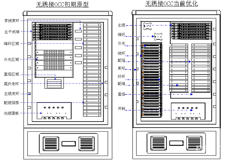 3、无跳接OCC现有结构在主干冗余暂存、主干直通、后续分光比提升后形成主干节余与分光和配缆形成相匹配方面考虑还有所欠缺。