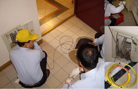 随着光纤接入深度的推进,FTTH接入施工(见图9)的难度越来越大。特别是对于那些旧区管内混线及入户复杂路径下布放时,面 对复杂的现场,问题显而易见,即便是使用牵引绳细弱的蝶形缆可比不上其抗拉度,断裂也成为可能;接入施工难度增加、网络运行故障隐患增加、网络部署效率也大打折扣。