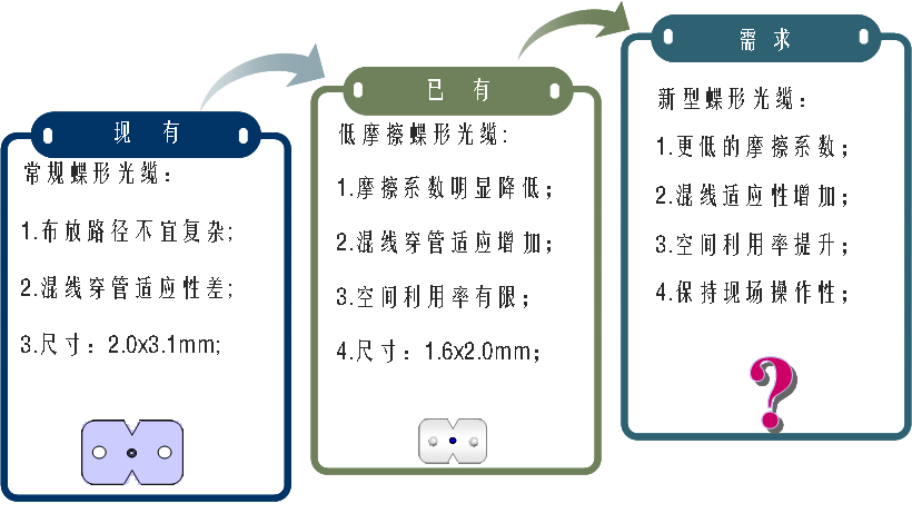 ·已有低摩擦光缆工艺上通过改形得到更低摩擦系数;