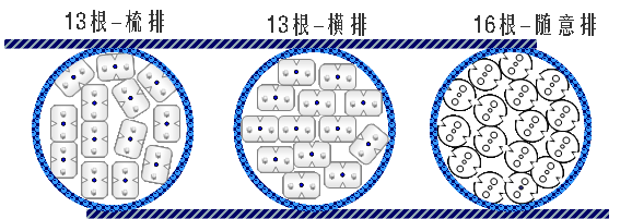 ·新结构提升空间利用率,相同管径下增加可布放数量,如图12所示,新型低摩擦蝶形光缆与现有低摩擦光缆在管道利用率上的对比,可以看出他同样的线管,可以容纳更多根数的新型低摩擦光缆。