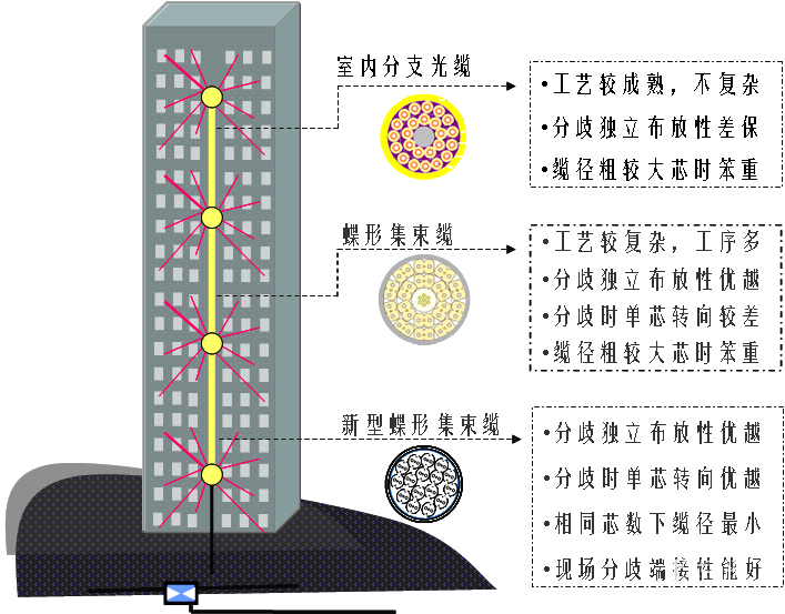 新型蝶形集束缆与当前蝶形集束缆、室内分支光缆的比较,见图14: