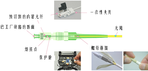 ·现场热熔接头原理采用预埋纤快速连接器概念,实则和普通尾纤接头无区别;