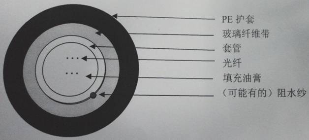 小型中心束管式引入光缆的结构如上图所示。外径为Φ1.8mm的松套管最多放4根光纤;外径为Φ2.5mm的松套管最多放12根光纤。套管内填充油膏。光纤的类型可以是G657光纤,也可以是G652光纤,还可以是多模光纤。在松套管外,纵包上一层玻璃纤维带作为缆的加强构件。护套采用高密度聚乙烯(HDPE)来提供机械保护。对于6~12芯(套管外径Φ2.5mm)的小型中心束管式引入光缆,还需要在套管上绕放一根阻水纱,来保证光缆的渗水指标合格。