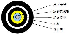 所谓的圆形引入光缆,结构看似较为简单,与传统所用的光跳线结构较为相似,其结构组成主要包括:紧包光纤、加强元件,外护套等。但是这种结构的圆形引入光缆不能等于同普通的光跳线光缆,原因在于其使用场合已经发生了根本性的变化,这也对光缆的质量提出了更高的要求,特别是光缆的抗弯曲、抗扭转、搞耐磨以及抗护套的开裂性能等。结合目前所使用的蝶形光缆,我司相继开发出了几种不同结构类型的圆形光缆,不同结构的光缆来适应不同的使用场景。圆形光缆根据不同的使用场合,主要用于室内外暗管,室外引入杆塔下引入以及楼层内槽道等方式进行敷设。用于FTTH的引入层,从分纤箱、分光分纤箱至用户的室内外通用型光缆。我司开发的主要圆形光缆结构如下: