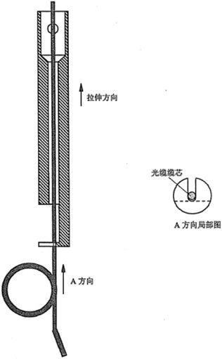 对于常规的光缆跳线光缆来讲,没有明确要求光缆护套的抽拔力;但于对于引入用光缆,引入了护套拉拔力的概念,这种要求的提出是基于圆形光缆在使用中最大限度的保护光纤,而且还要求光缆便于现场光缆的端接。圆形引入光缆的主要使用场景为室内外引入或穿室内暗管,这光缆布放或穿管的过程中需要承受即时的过大外力,为了验证光纤紧包层剥离力及护套的拉拔力要求,我们专门设计了紧包层/护套开剥装置,结构示意图如图1、图2所示: