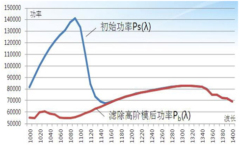 图1 滤除高阶模前后功率对比与截止波长拟合